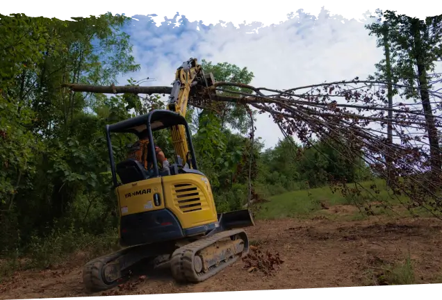 Our trained operators use the right tools for the job, from chainsaws and skid steers to excavators with grapples or tree shears. Trees are safely cut, sectioned, and removed from the site with minimal ground disturbance.